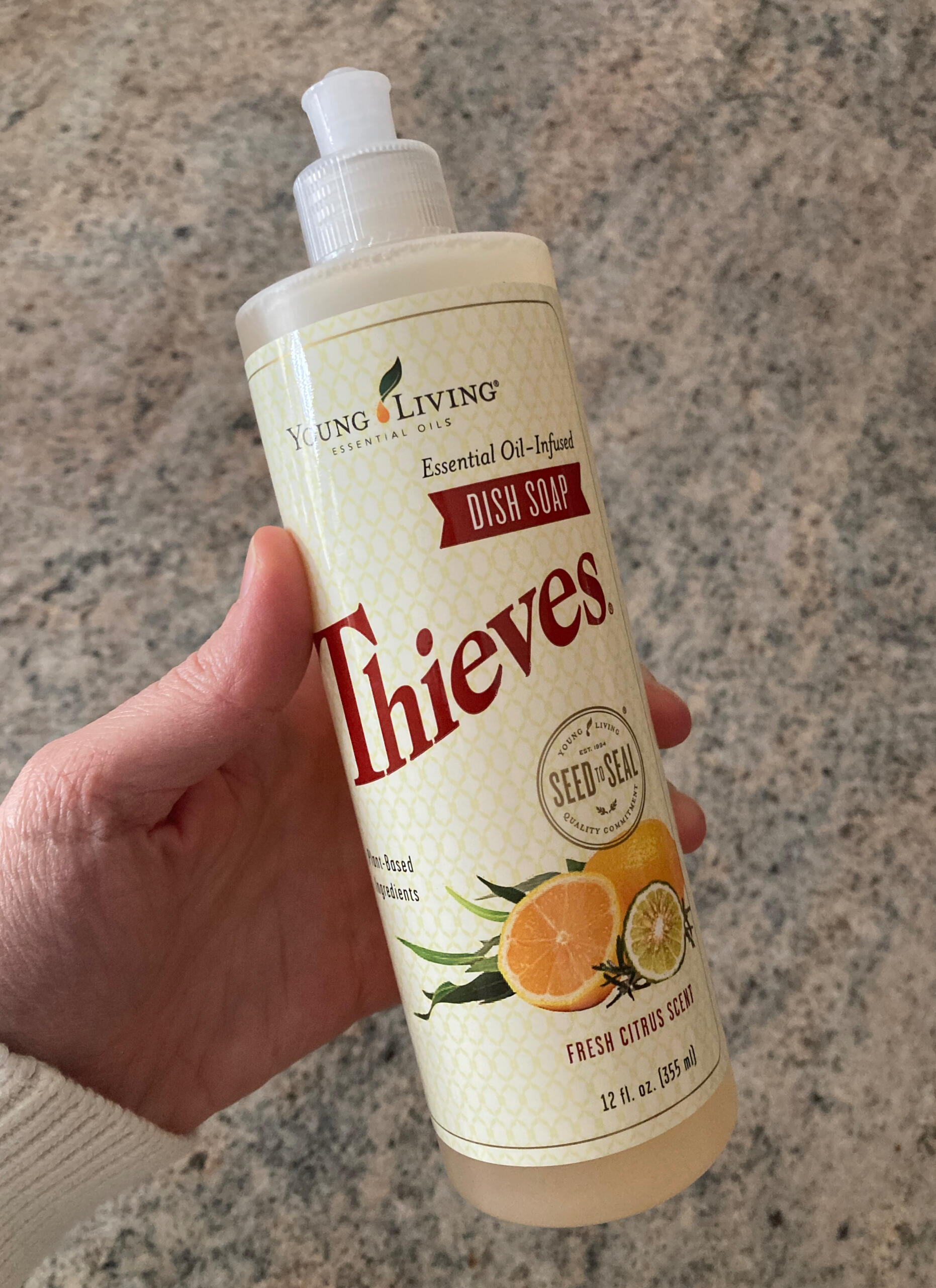 ↑ Thieves Dish Soap is one of my husband's favorites. He and I split up dish duty, and each time he washes dishes he says "I love this stuff". It literally leaves dishes sparkling and rinses clean- without the worry of leftover residue like if we were washing with the bright blue dish soap with the duck on the packaging. Speaking of, have you ever dug into what happens to the ducks after they clean up them up from the oil spill with the bright blue stuff??? Research at your own risk. We love the Thieves Dish Soap, it works so well. Especially when you use a Scrub Mommy sponge.