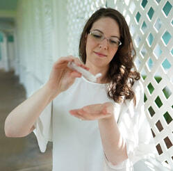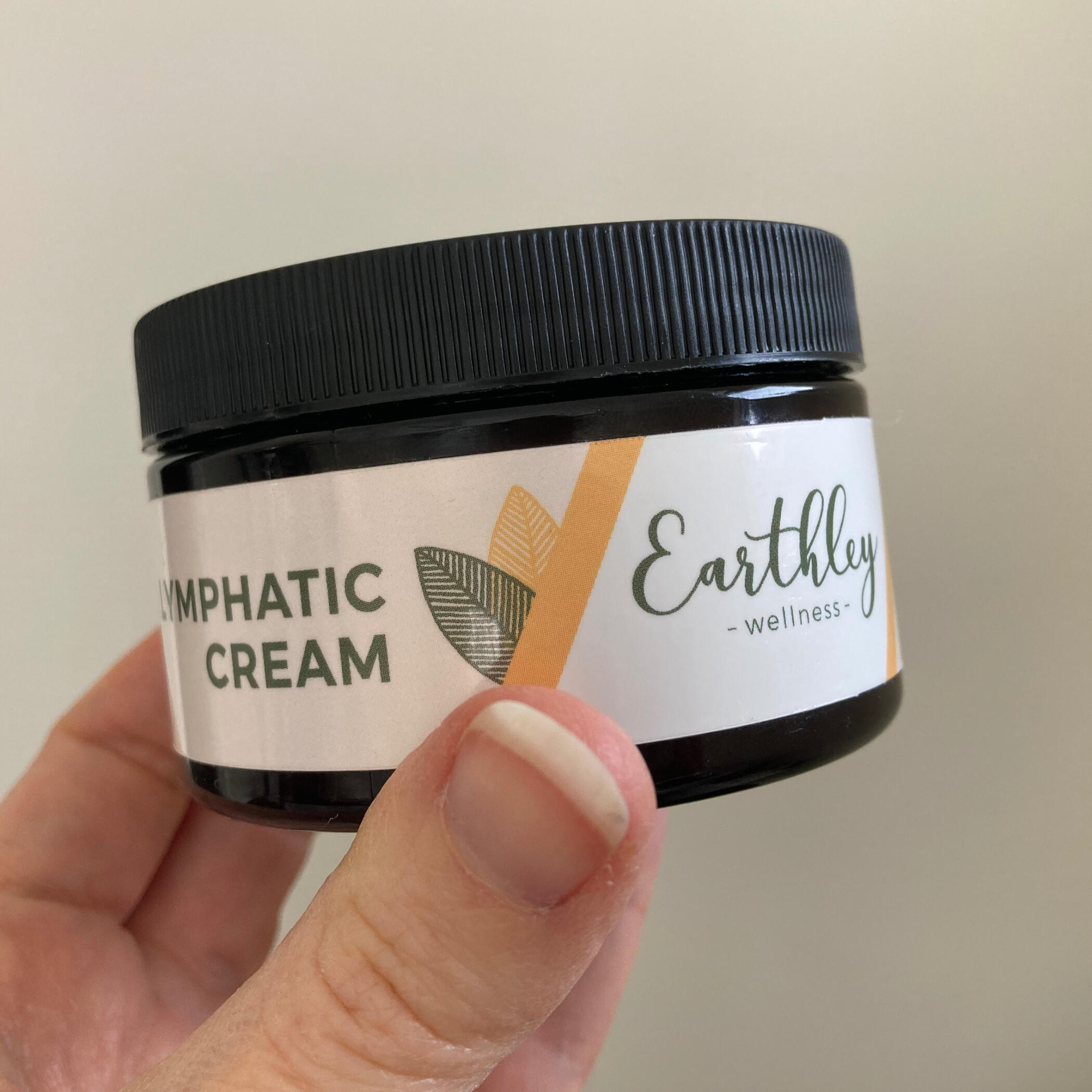 I love to make my own calendula salve, but I didn’t have any on hand. But what I DID have was this wonderful Earthley brand Lymphatic Cream. It does such a great job of helping with lymphatic draining, but I remembered it also had skin soothing calendula in it! So I put that on top after the essential oils had absorbed in, and proceeded to blow on my hand to cool it down for a while.