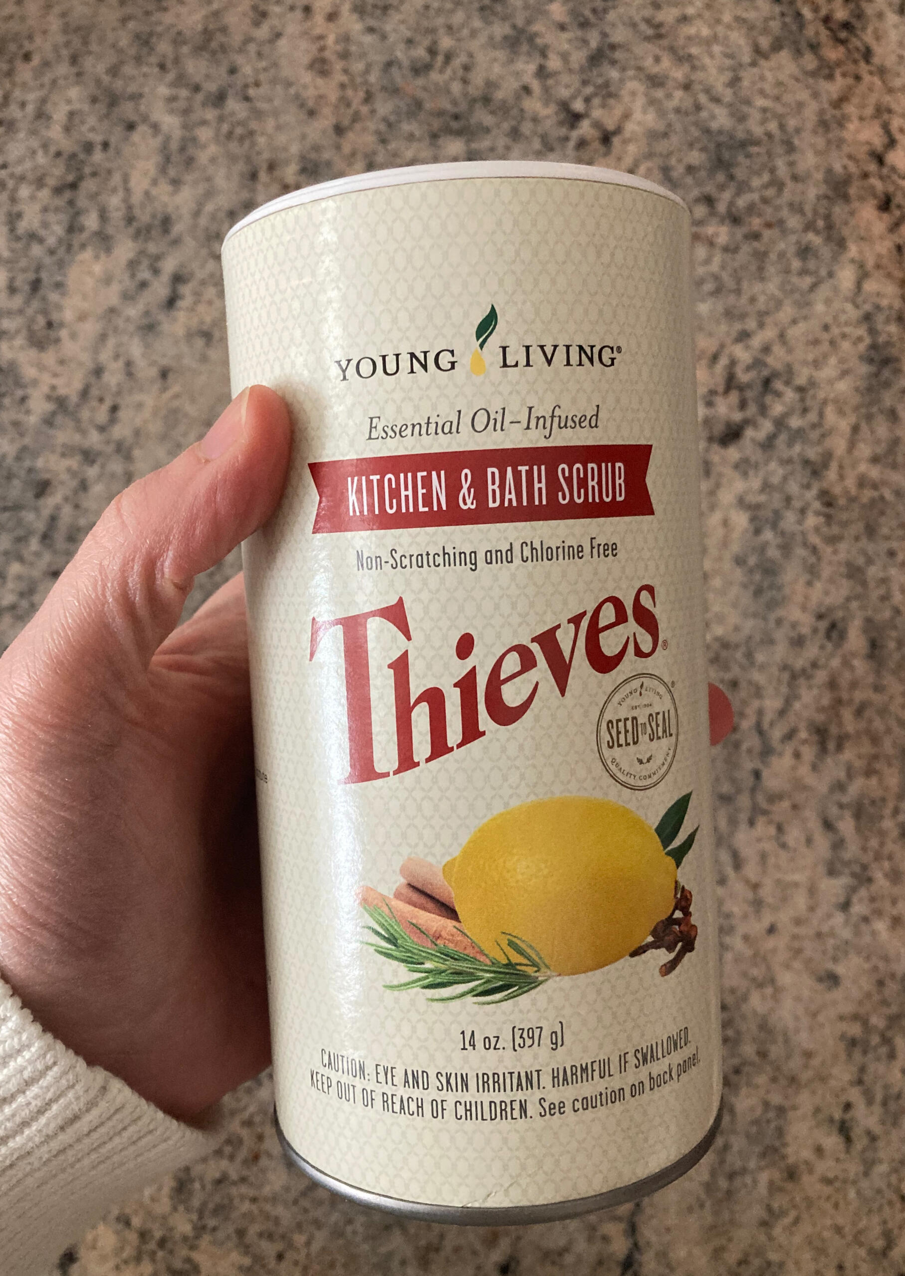 Thieves Household Cleaner is the perfect, versatile go-to for all your cleaning needs for a happy, healthy home. This Young Living exclusive includes only plant-based and naturally derived ingredients to effectively clean your home without taking synthetic shortcuts or using potentially harsh ingredients. Plus, the concentrated formula means that one 14.4oz bottle makes 20 spray bottles of standard cleaner!Thieves Kitchen & Bath Scrub:
